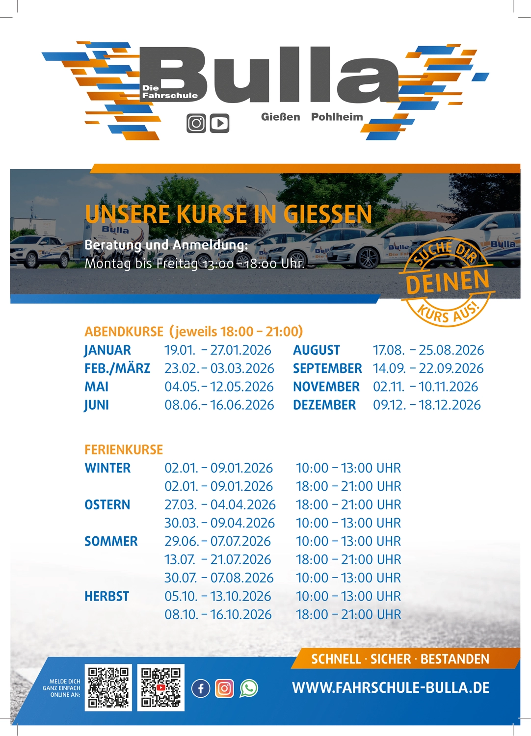 Die Fahrschule Bulla ist bereits seit über 50 Jahren ein Begriff in Sachen Führerschein in Gießen und Umgebung.